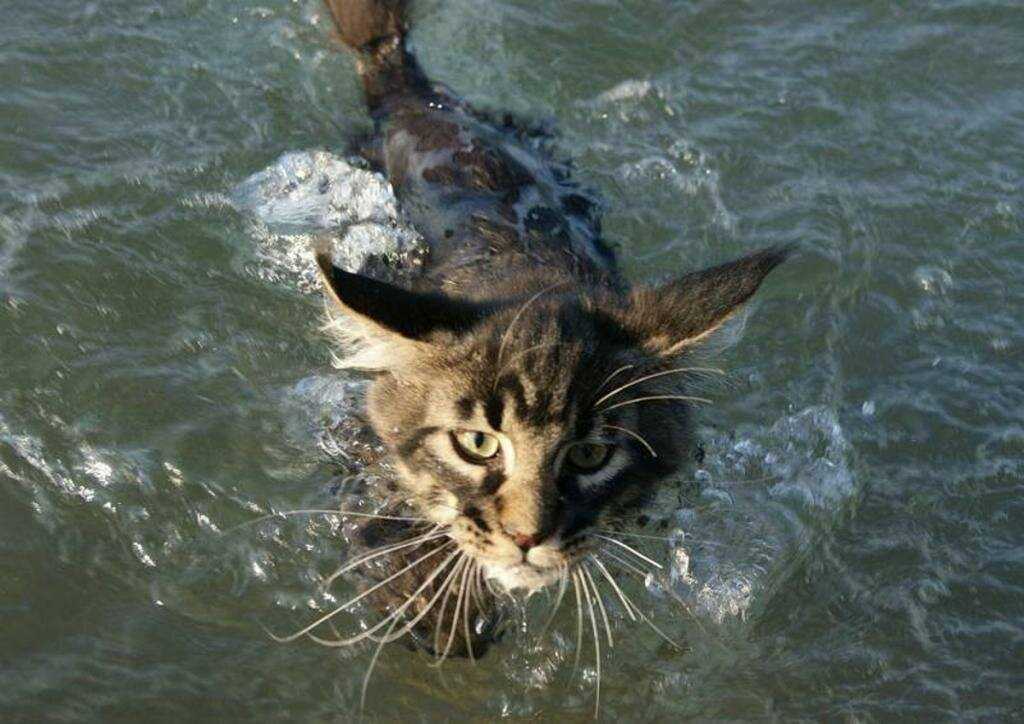 Плавают кошки «по-собачьи»: подгребая под себя воду передними лапками. Получается это у семейства кошачьих просто замечательно, но если ради проверки навыков плавания, бросить питомца в воду, можно надолго вселить в животное страх перед водными процедурами. Приучать нужно постепенно и лучше с раннего возраста, тогда при купании питомец не будет яростно сопротивляться.