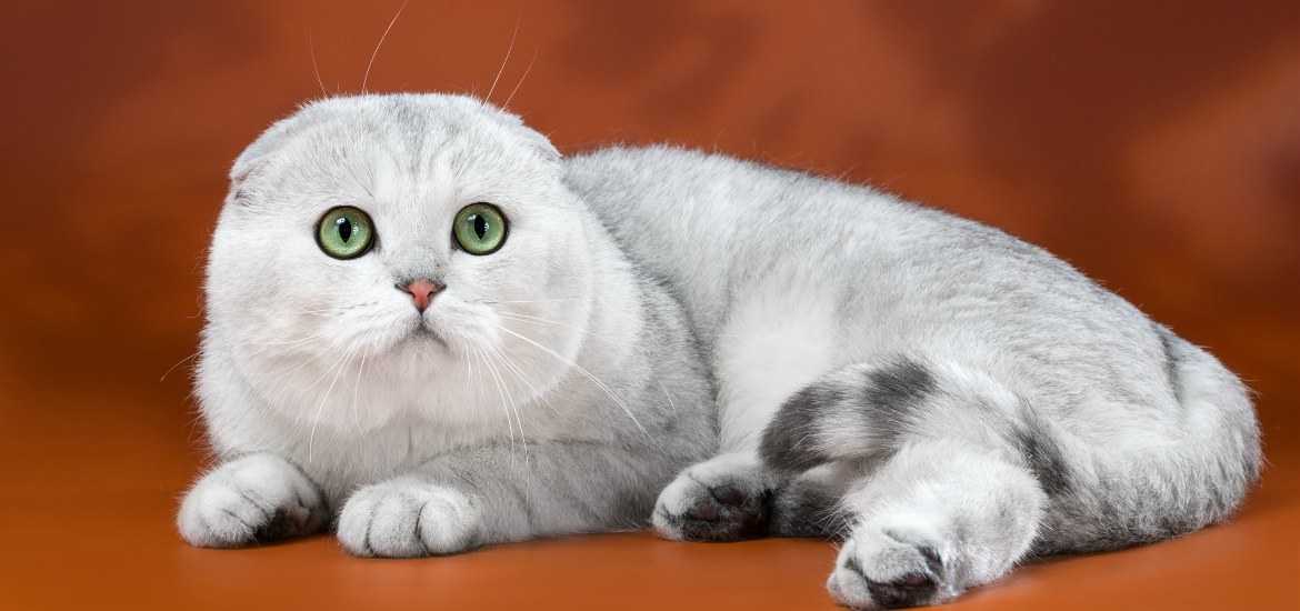 - Шотландская вислоухая – довольно старая порода, появившаяся в 1961 году в Шотландии. Домашний питомец отличается крепким телосложением и интересной внешностью за счет приплюснутых ушей. При соответствующем уходе животное может дожить до 16 лет.