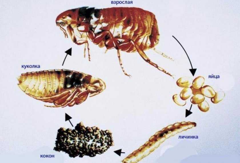 Цикл размножения блохи несколько отличается от размножения вшей.