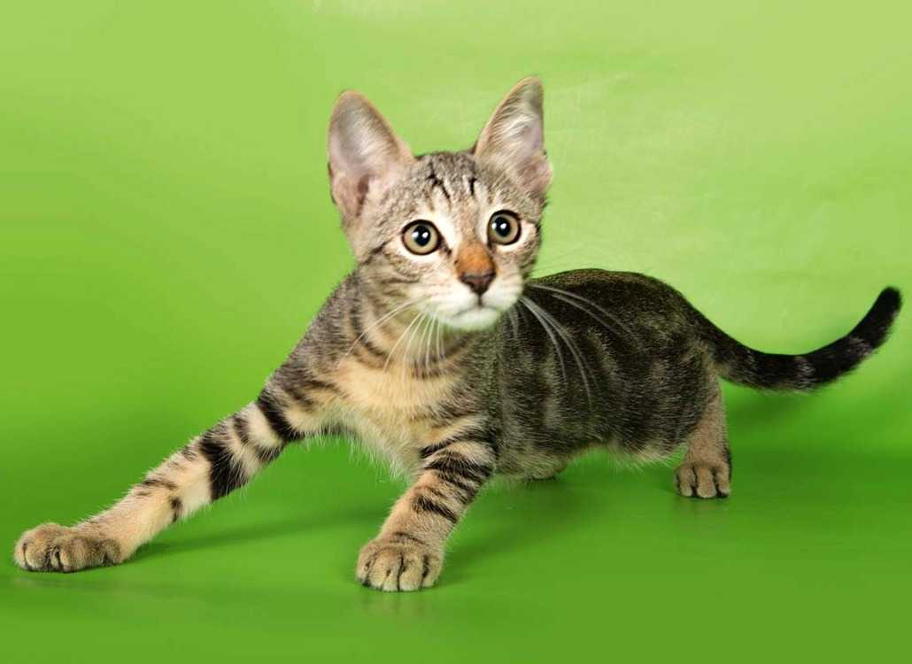 Аборигены прозвали животное «хадзонзо», что в переводе означает «похожий на кору дерева». А ведь правда, шерстка питомца радует глаз оттенками от нежно-кремового до темно-коричневого. А расположение цветных полос на теле кошки делает ее похожей на дикую тигрицу.