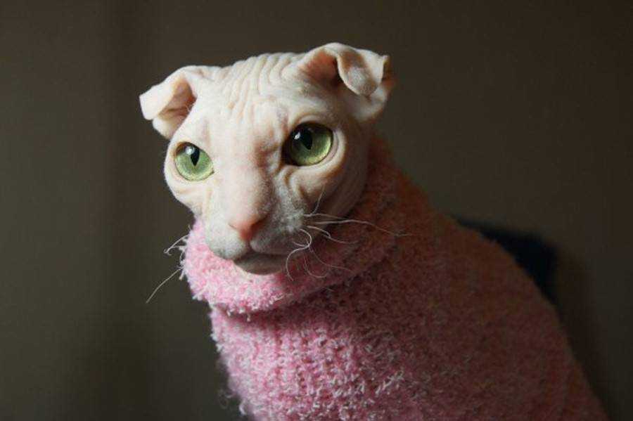 Уход за кошками требует особого внимания. Отсутствие шерсти делает их очень чувствительными к холоду. Поэтому не помешает приготовить им немного одежды на зиму.