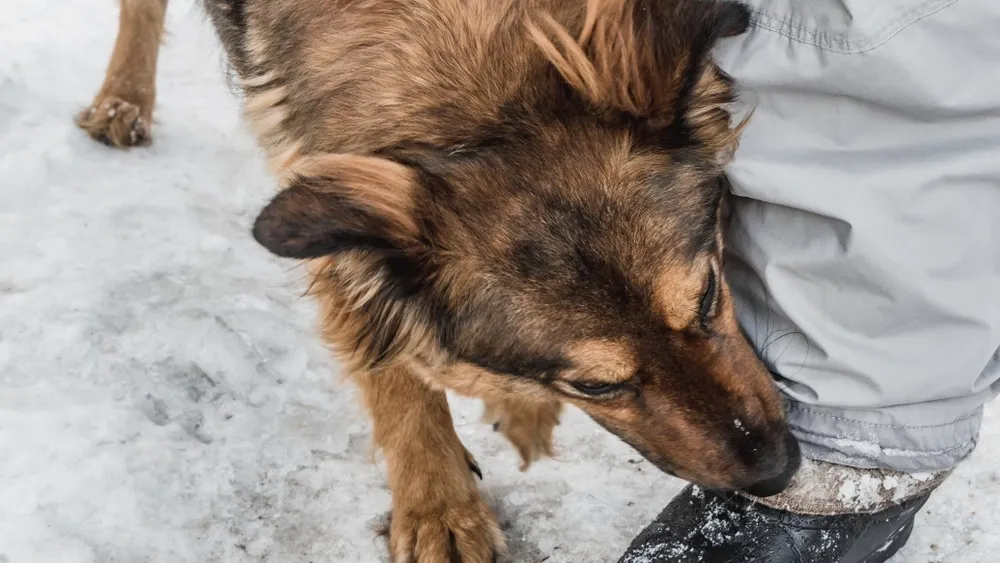 - Если собака не реагирует на команды, киньте в нее каким-то предметом. Хорошо, если под рукой окажется камень, глыба снега, палка.
