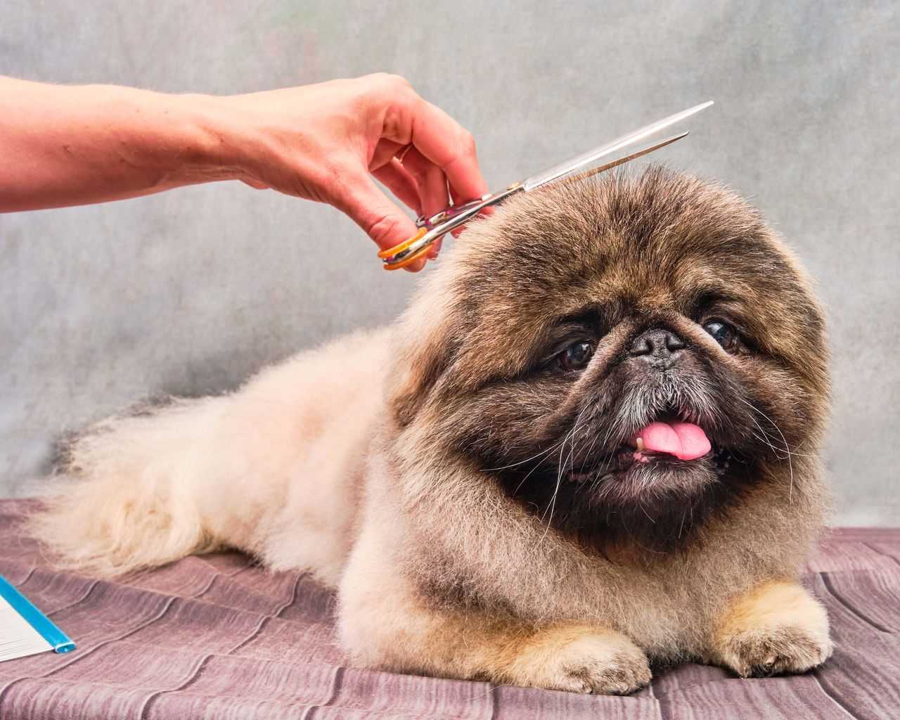 Уход за пекинесами предполагает регулярный груминг – различные гигиенические и эстетические процедуры для кожи, шерсти и когтей животного. Стрижки не являются стандартной практикой, хотя перед выставками и в периоды жары особо длинную шерсть можно укорачивать.