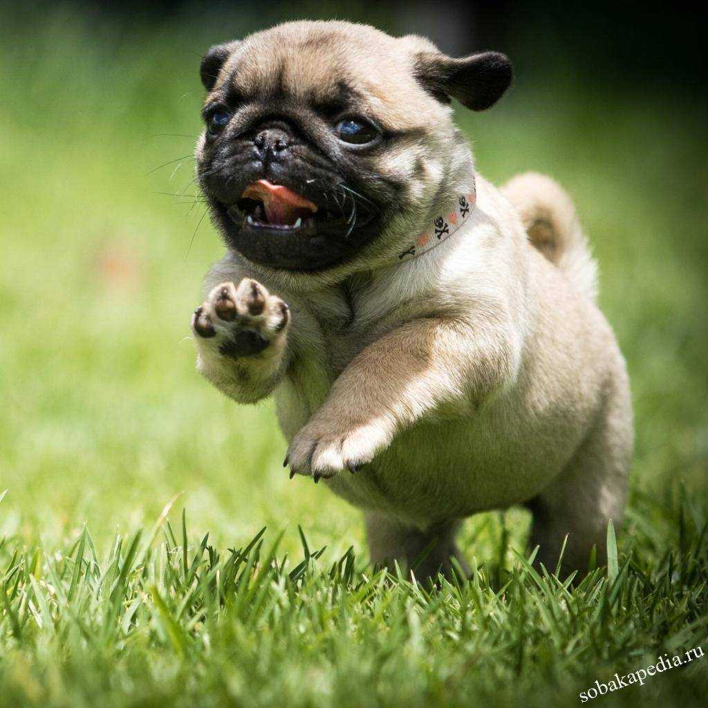 Еще одна важная характеристика породы мопс – походка. Описание, приведенное в стандарте, говорит, что собака движется уверенно и размеренно. Характерны легкие перекатывающиеся движения задних конечностей, что очень гармонирует с образом в целом.
