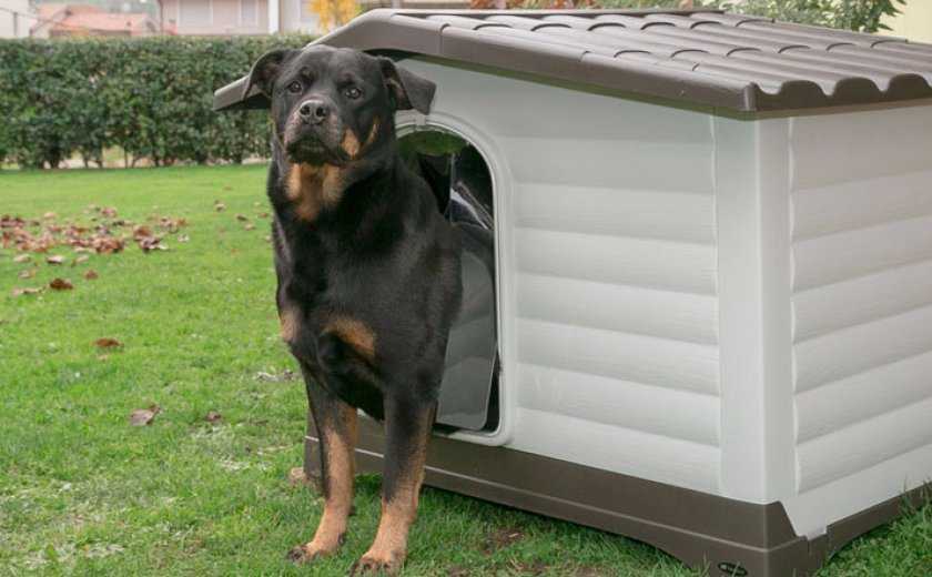 - жилище для ротвейлера рекомендовано немного приподнять над землей, разместив на брусьях;