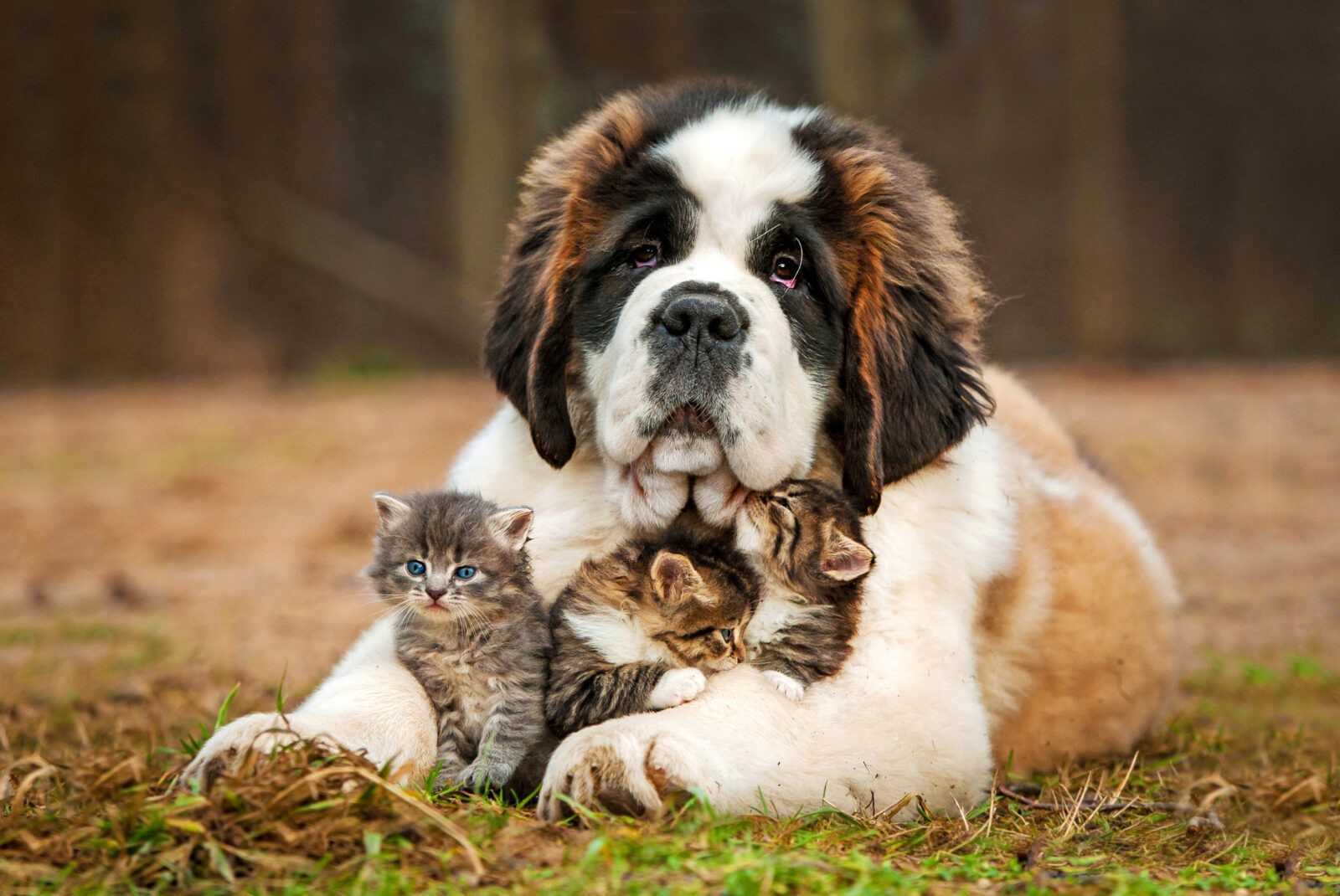 Удивительно, но сенбернары, которые обожают детей, не любят маленьких собак. Но если питомец рос вместе с мелкой собакой, то конфликтных ситуаций не возникает.