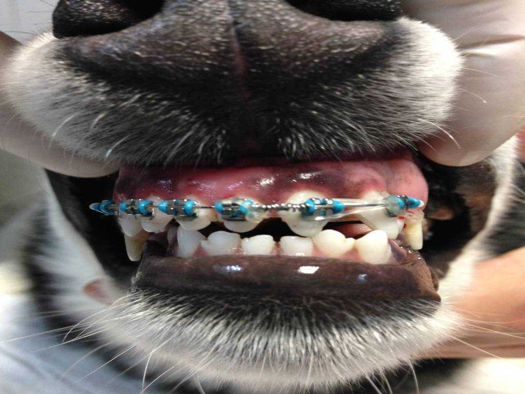 - Иногда зубы могут начать расти раньше, чем выпадут молочные, при этом образуя второй ряд. В таком случае необходимо помочь животному от них избавиться, чтобы в будущем не повредился прикус.
