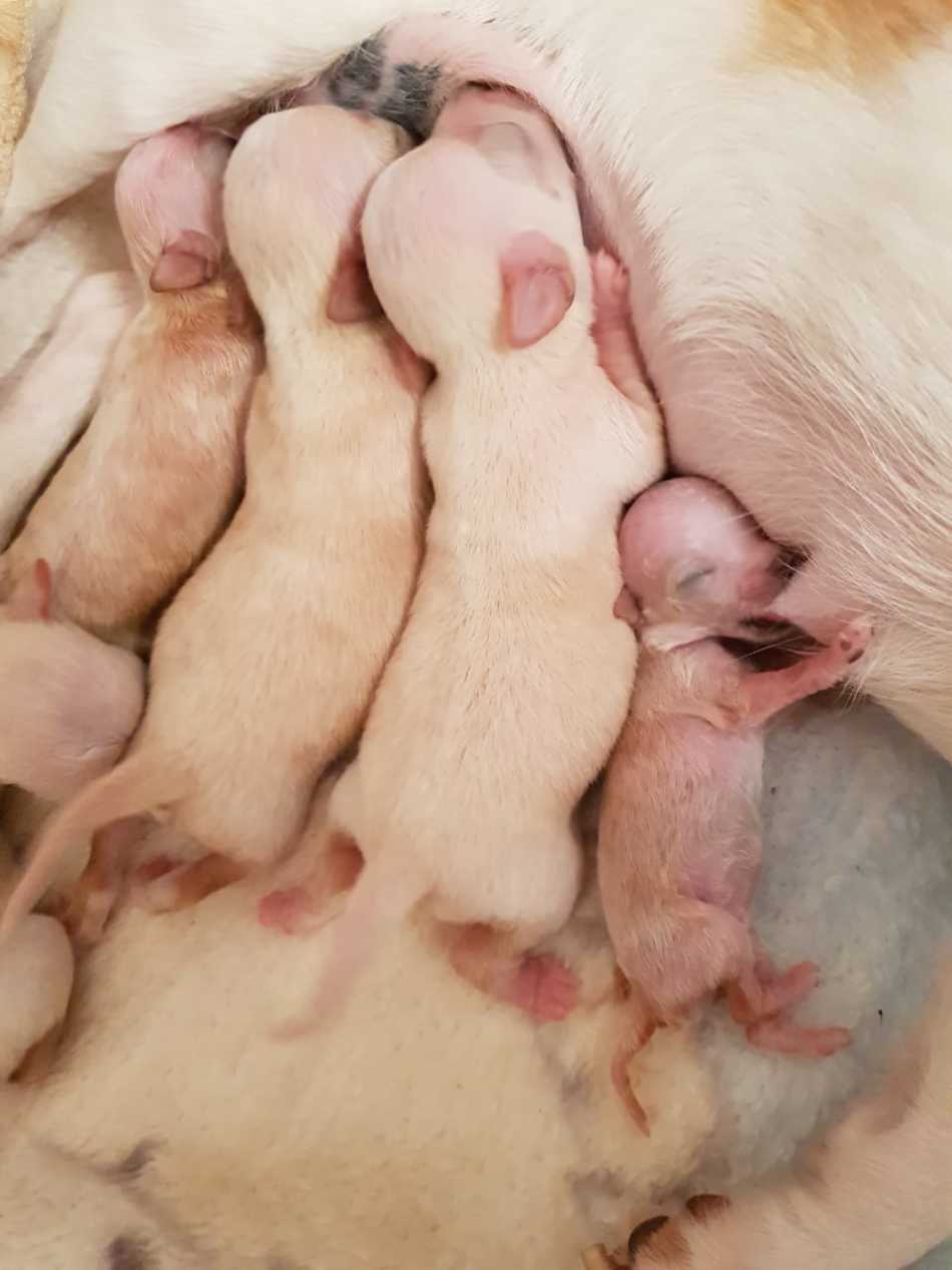 Роды можно считать оконченными, если все новорождённые щенки усиленно сосут материнское молоко, рога матки при прощупывании пусты, отсутствуют какие-либо утолщения или уплотнения.