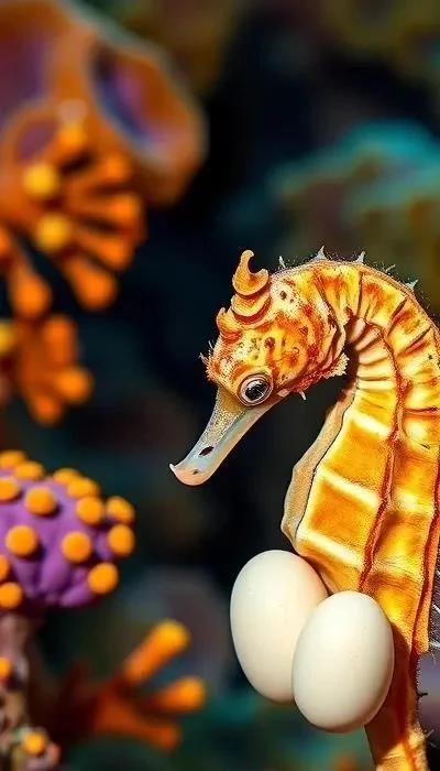 Забота самцов о потомстве – еще один необычный пример. У некоторых видов рыб самцы вынашивают икру во рту, защищая ее от хищников и обеспечивая кислородом. У морских коньков самец вынашивает оплодотворенные яйца в специальном выводковом мешке, пока не вылупятся мальки.