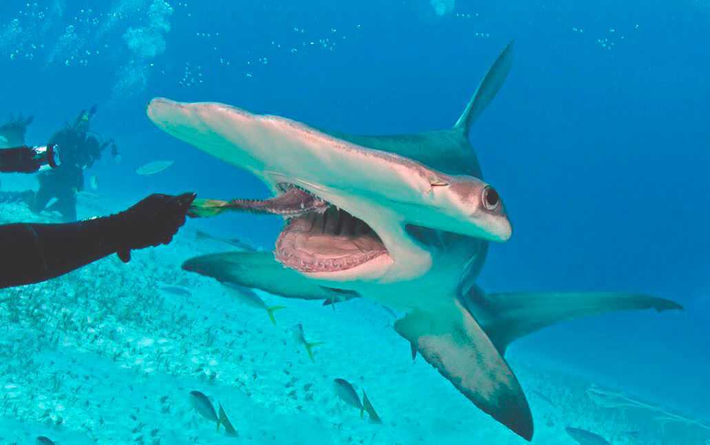 Молотоголовая акула может чувствовать потенциальную жертву через слой песка, если даже та спряталась под камнем или в водорослях.
