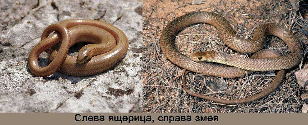 Некоторых ящериц, например медяниц, принимают за змей. Несомненно, ящерица похожа на змею, по крайней мере, некоторые виды имеют такое сходство. У ящериц, в отличие от змей, есть лапы. Но как отличить безногую ящерицу от змеи?