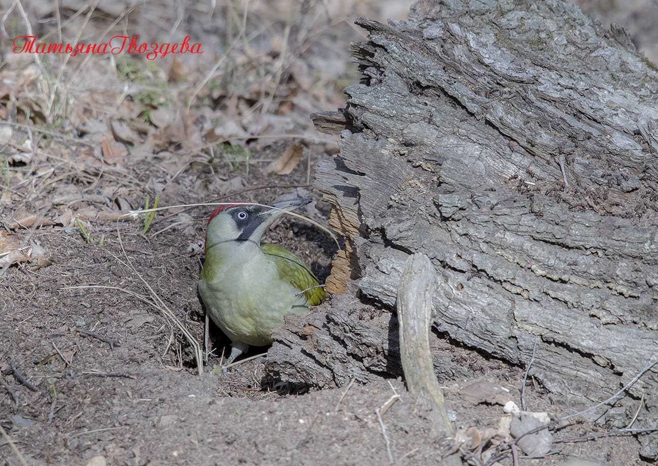 Любимое блюдо в их изысканном белковом меню – муравьи и их личинки. Зелёный дятел – настоящий гурман, ради того чтобы полакомиться муравьями, он регулярно улетает далеко от гнезда в поисках муравейника. Когда он находит муравейник, то подлетает к нему, раскапывает ямку глубиной около восьми сантиметров и ждёт.