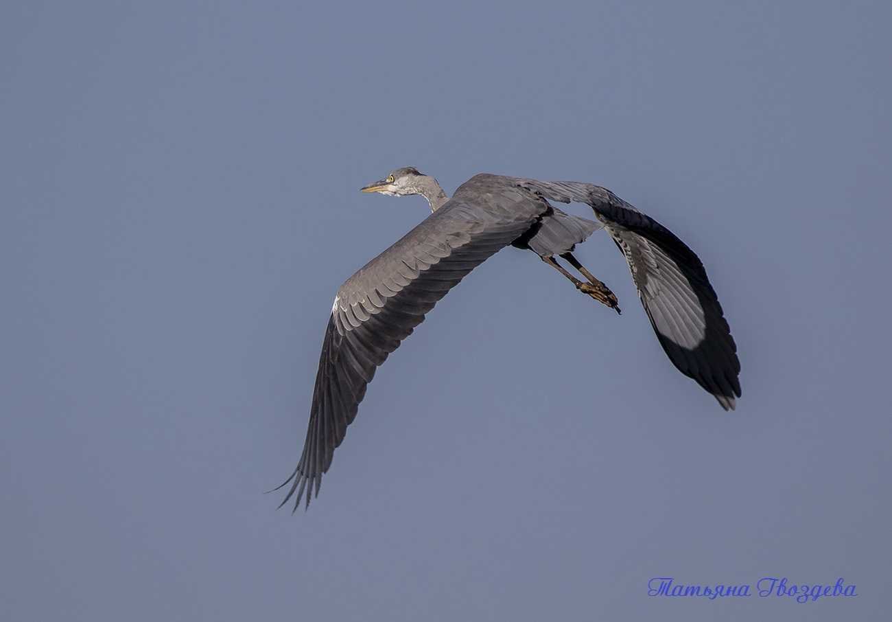 В полете цапля, в отличие от других видов аистообразных, не вытягивает ее вперед, а складывает так, что голова практически ложится на тело.