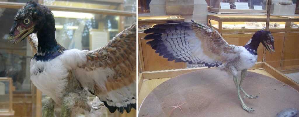 Археоптерикс величиной с цыпленка — самое раннее среди известных животных, которое можно назвать птицей. Возможно, что археоптерикс был покрыт перьями и умел летать. Во всяком случае, скелет его почти идентичен скелету плотоядного динозавра компсогната, мелкого теропода.