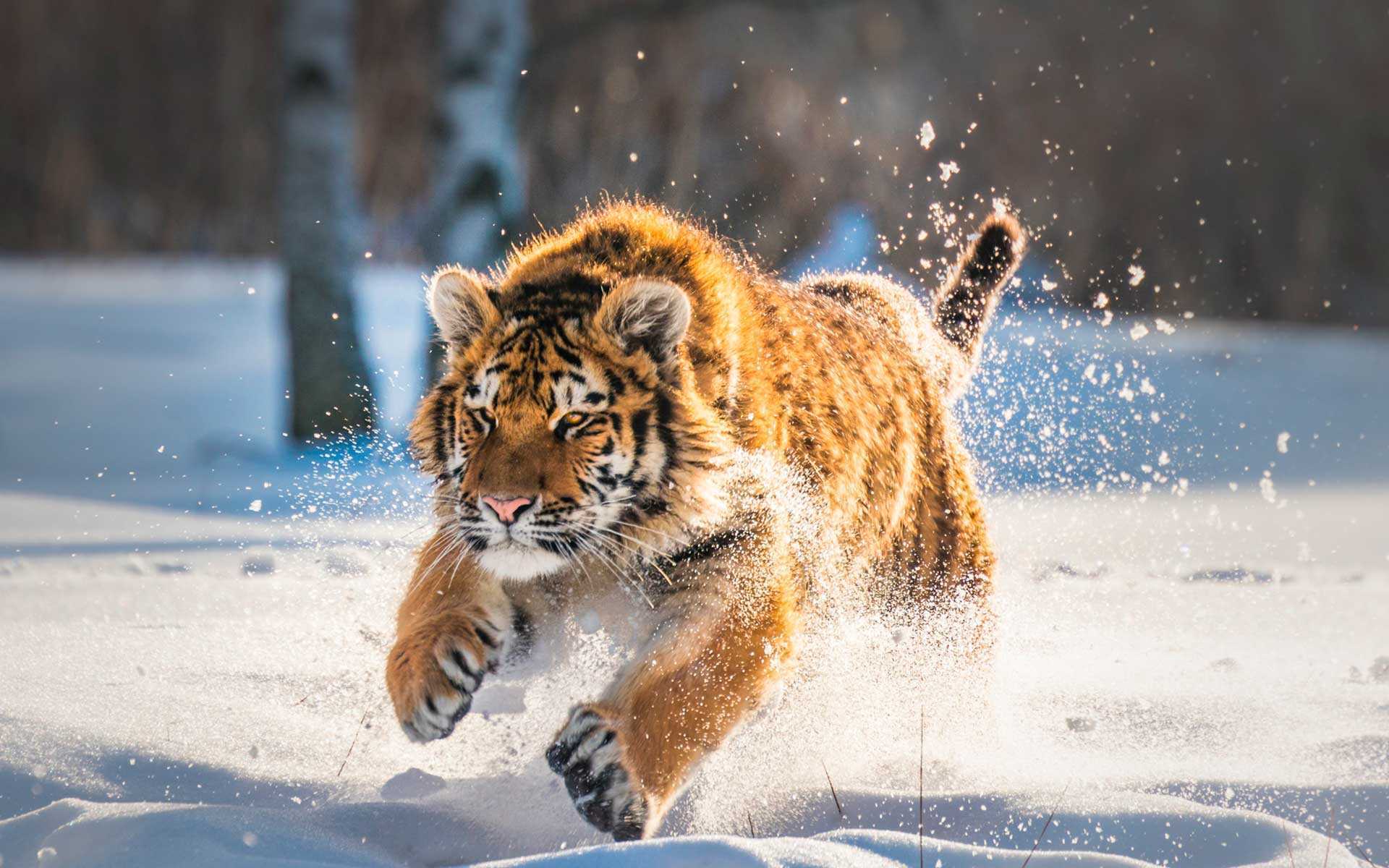 Тигр – очень грозных охотник. Он способен совершать прыжки до 5 м в высоту и до 10 м в длину. Несмотря на значительные размеры тигр способен бежать со скоростью 60 км/ч, причем по любой местности. Но если добычу не удалось схватить сразу, тигр будет ее преследовать не более 100-150 м.