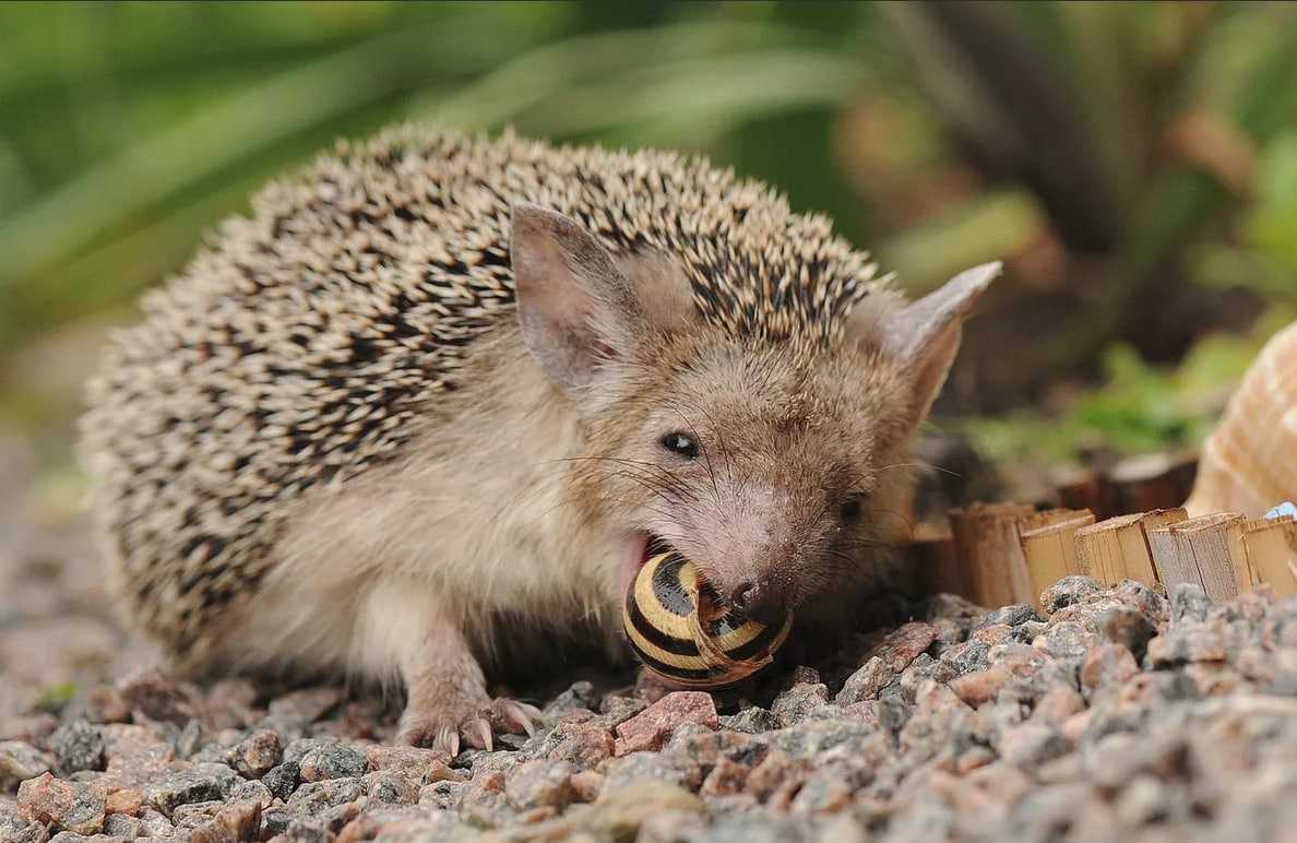 Обыкновенный еж – животное всеядное, основу его питания составляют гусеницы, взрослые насекомые, слизни, мыши, дождевые черви и т. д. В естественных условиях животное редко нападает на позвоночных, чаще всего жертвами ежиков становятся амфибии или оцепеневшие рептилии.