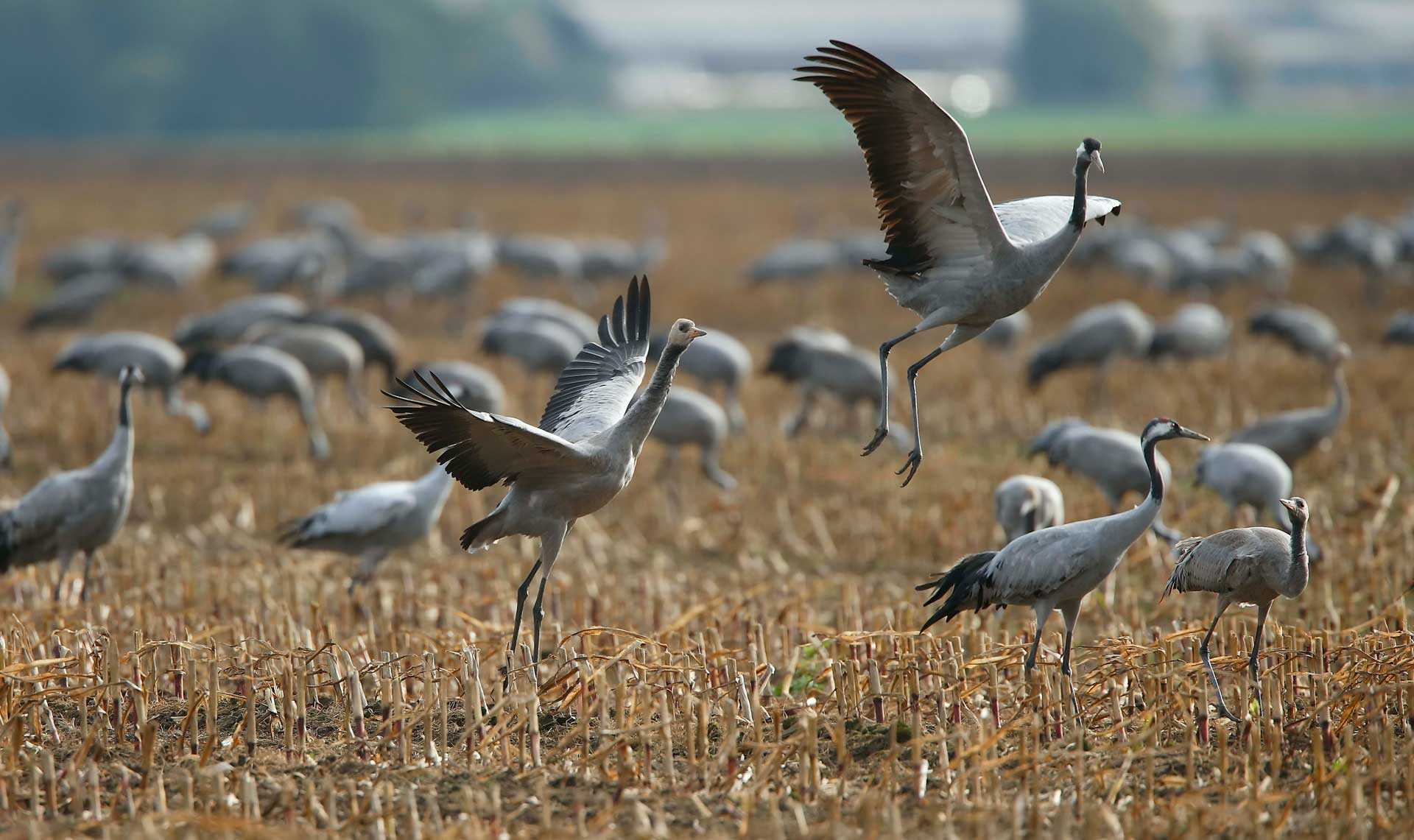 В своем перелете журавли используют термали – теплые потоки воздуха, поднимающиеся от земли вверх. Улавливая их своими крыльями, птицы экономят силы и время – вот почему иногда можно увидеть, как журавли кружат, поднимаясь все выше и выше.