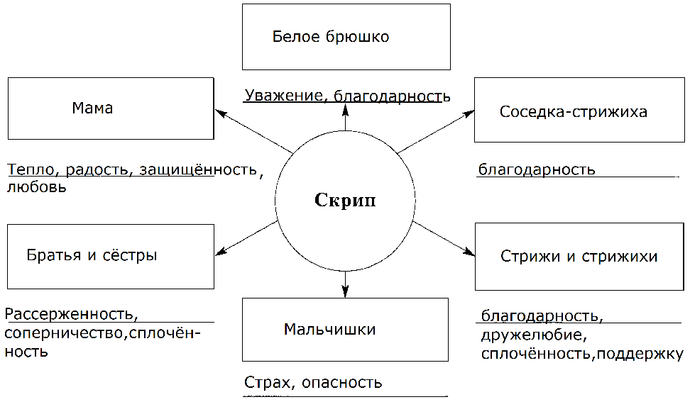5. Схема С кем пришлось общаться Скрипу? Заполните схему. Подпишите, какие чувства испытывал Скрип, общаясь с этими персонажами.