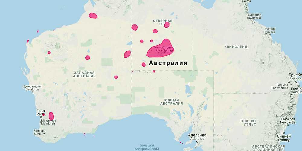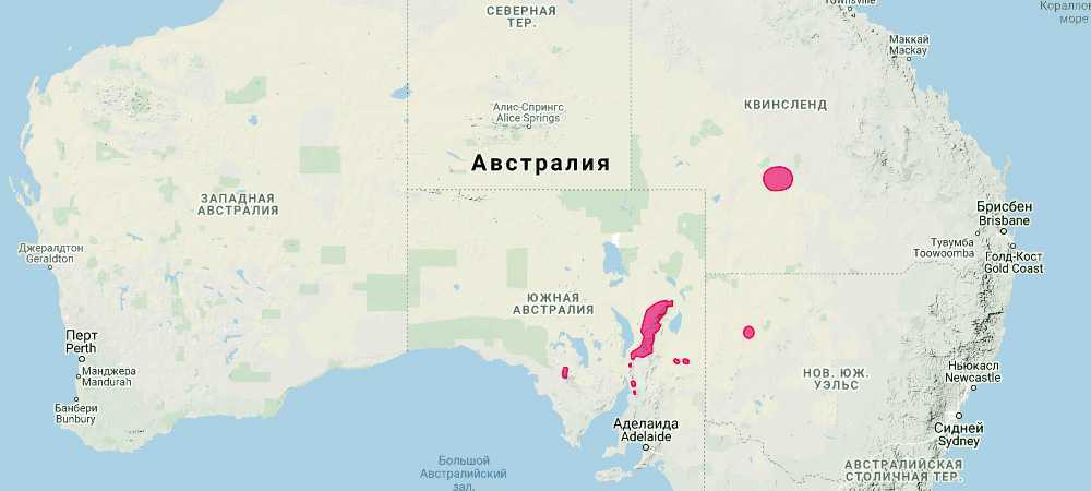 В центральной, южной и западной части Австралии, а также на некоторых прибрежных островах.