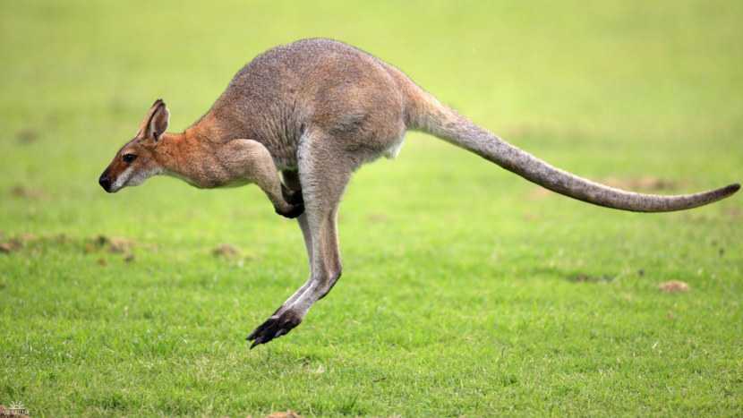 У этого животного необычайно длинные и сильные задние ноги, они позволяют ему прыгать в длину на дистанцию до 12 м и развивать скорость около 60 км/ч, зато дольше 10 минут передвигаться в бешеном темпе кенгуру не сможет.