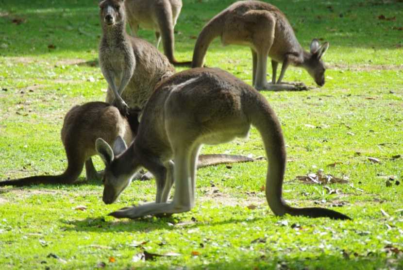 Восточный серый кенгуру — легендарное сумчатое млекопитающее. Они живут в восточной Австралии группами по 10 и более особей на расстоянии до 5 км.