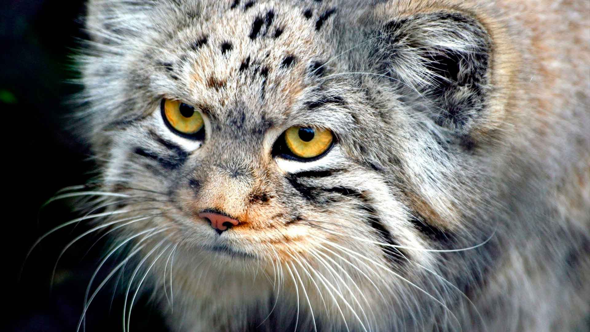 Описание манула можно начать с его внешности. Манул выглядит похожим на обычную кошку, только более крупную и пушистую. Размеры манула составляют от 50 до 65 см при длине хвоста до 30 см. Весит манул от 2 до 5 кг. От обычной кошки дикий кот манул отличается более массивным телом, короткими крепкими лапами и очень густой шестью. Кстати шесть манула может достигать длины в 7 см. Кот манул имеет самый пушистый и густой мех среди кошачьих.