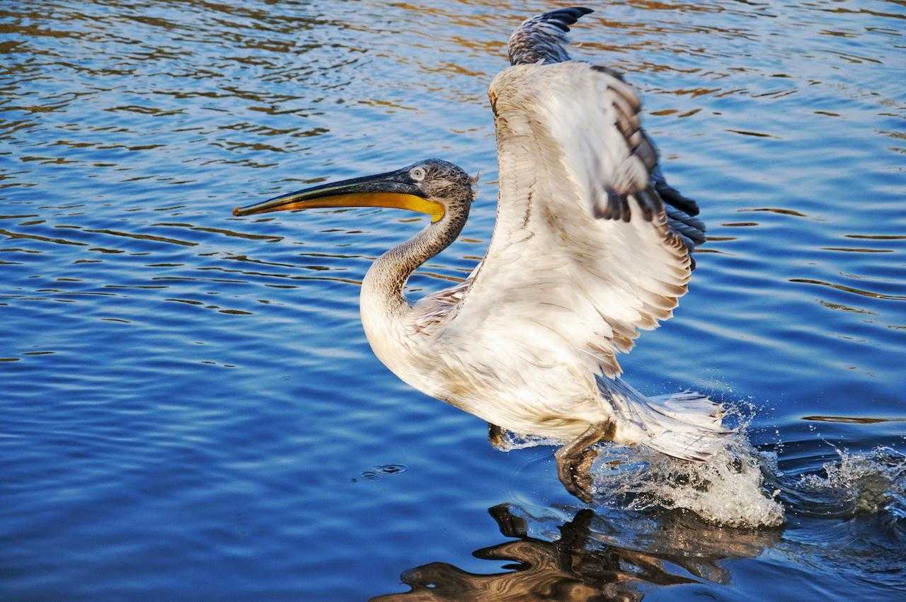 Кудрявый пеликан – эти пеликаны являются перелетными птицами, селятся обычно возле труднодоступных озер, в низовьях и дельтах рек с большим количеством растительности. В народе птицу называют «баба-птица». Пары этого вида остаются верными друг другу всю жизнь.
