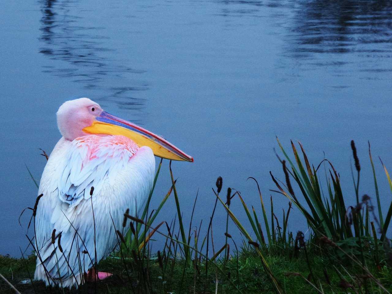 Розовый пеликан – вес птицы может достигать 15 кг. У взрослых птиц оперенье имеет бело-розовый оттенок, особенно яркий на брюшке в брачный период цвета становятся ярче. Эти птицы занесены в Красную книгу как исчезающий вид.
