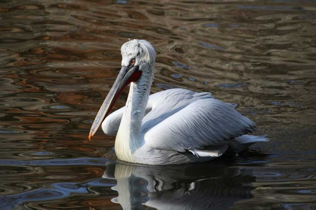 Розовоспинный пеликан – эти птицы очень похожи на розовых пеликанов, однако немного меньше размером и в брачный период на спине у них появляются розово-рыжий оттенок, к тому же их голова покрыто большим количеством завитков.