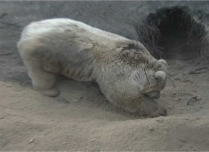 В северных регионах земного шара косолапые тяжеловесы впадают в спячку только после того, как соорудят специальное убежище – берлогу. Бурые медведи строят свое укрытие из массивных веток и сучьев, а белые – выкапывают норы в больших снежных сугробах. Нередко бурые медведи берут пример со своих северных сородичей, выкапывая себе земляные норы в обрывистых песчаных берегах лесных речушек.