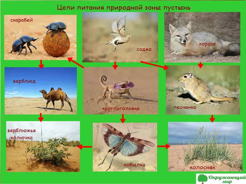 5) Расскажите по этому рисунку об экологических связях в пустыне. Изготовьте модель цепи питания, характерной для пустыни.