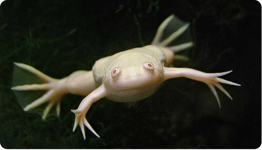 Количество пищи тоже нужно ограничивать. Если давать земноводным столько корма, сколько они могут съесть — у них быстро разовьется ожирение. Забавно наблюдать за тем, как питается ксенопус. У этой лягушки нет языка, поэтому она помогает себе заглатывать пищу, проталкивая ее в рот лапками.