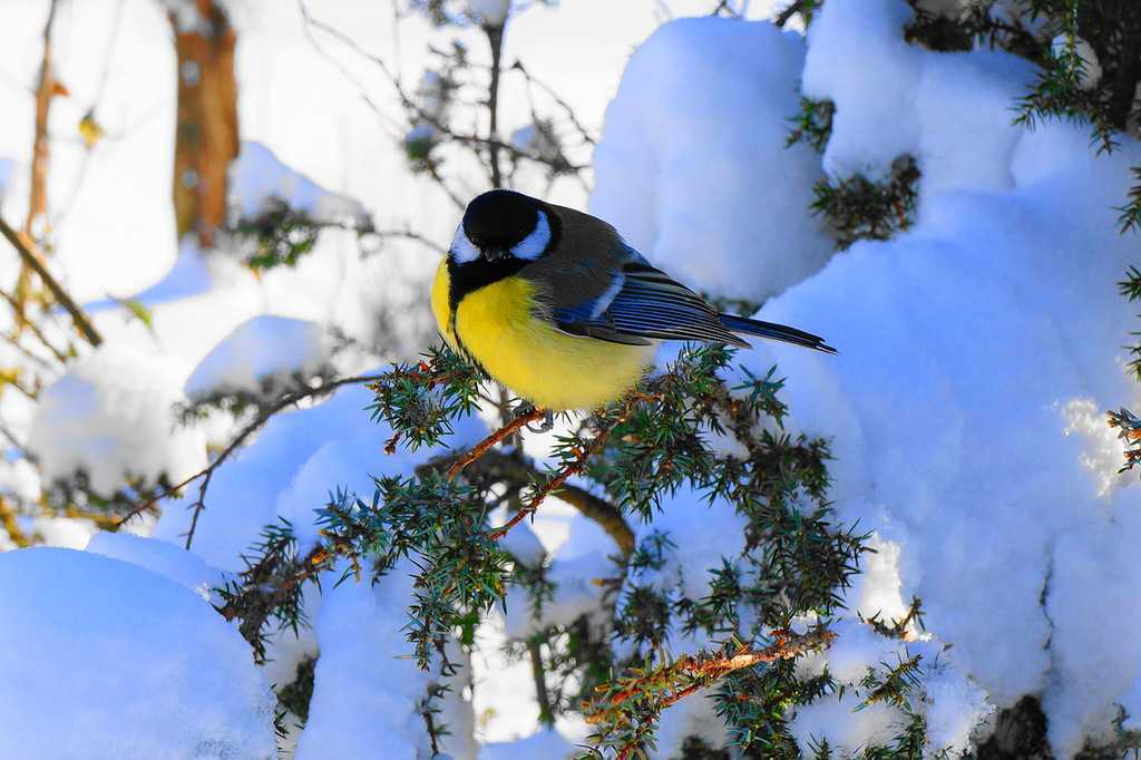 Синица ест мелких вредителей сосны, беспозвоночных.