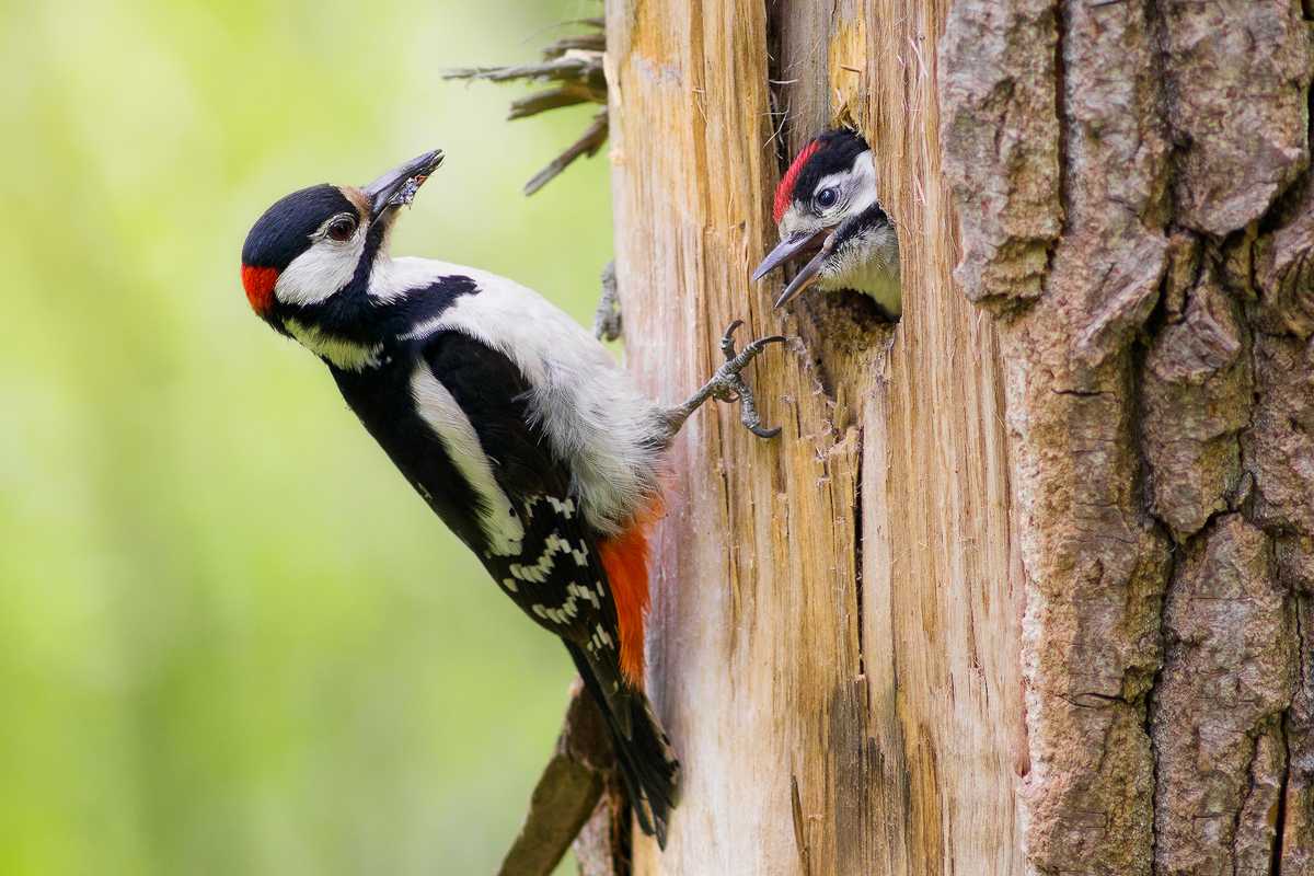 Дятел гнездо устраивает в дупле, детенышей самка и самец высиживают и выкармливают попеременно.