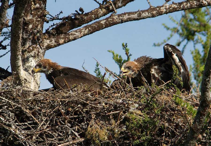 Беркут селится в гнезде на дереве или труднодоступном скалистом уступе.